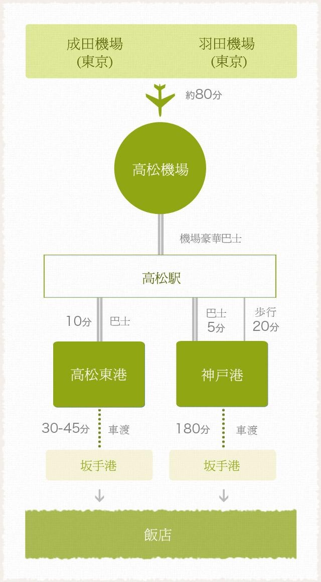 交通途中必須搭船,不過從高松、宇野、岡山、姬路、日生、神戶港都有船可以前往小豆島,算是從本州很容易前往的島嶼。